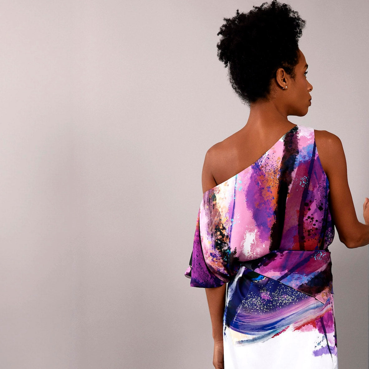 Featuring deep purples, violets & blues with hints of gold-this print sings against our snow white and caviar colours.